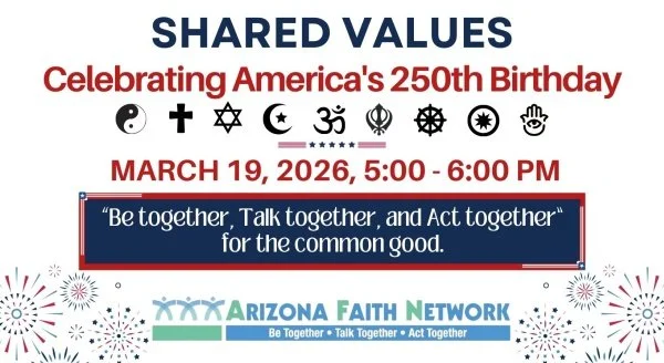 Join AFN for a series of four monthly online gatherings followed by an interfaith prayer vigil as we mark 250 years of the American experiment. Drawing on the faith250 framework, we will gather to reflect on texts that have shaped our history, from the call of the New Colossus, to the promise of the Declaration of Independence and more. We will hear from diverse guest speakers and together, we will seek divine guidance to move beyond polarization and toward a future where "liberty and justice for all" is a lived reality for every neighbor.