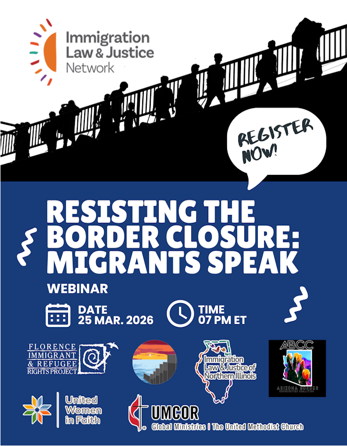 From the Immigration Law and Justice Network, “Resisting the Border Closure: Migrants Speak,” a webinar in which participants are invited to “come, listen, learn, and stand with those whose lives are being directly impacted” by the continued destruction of the U.S. asylum system.