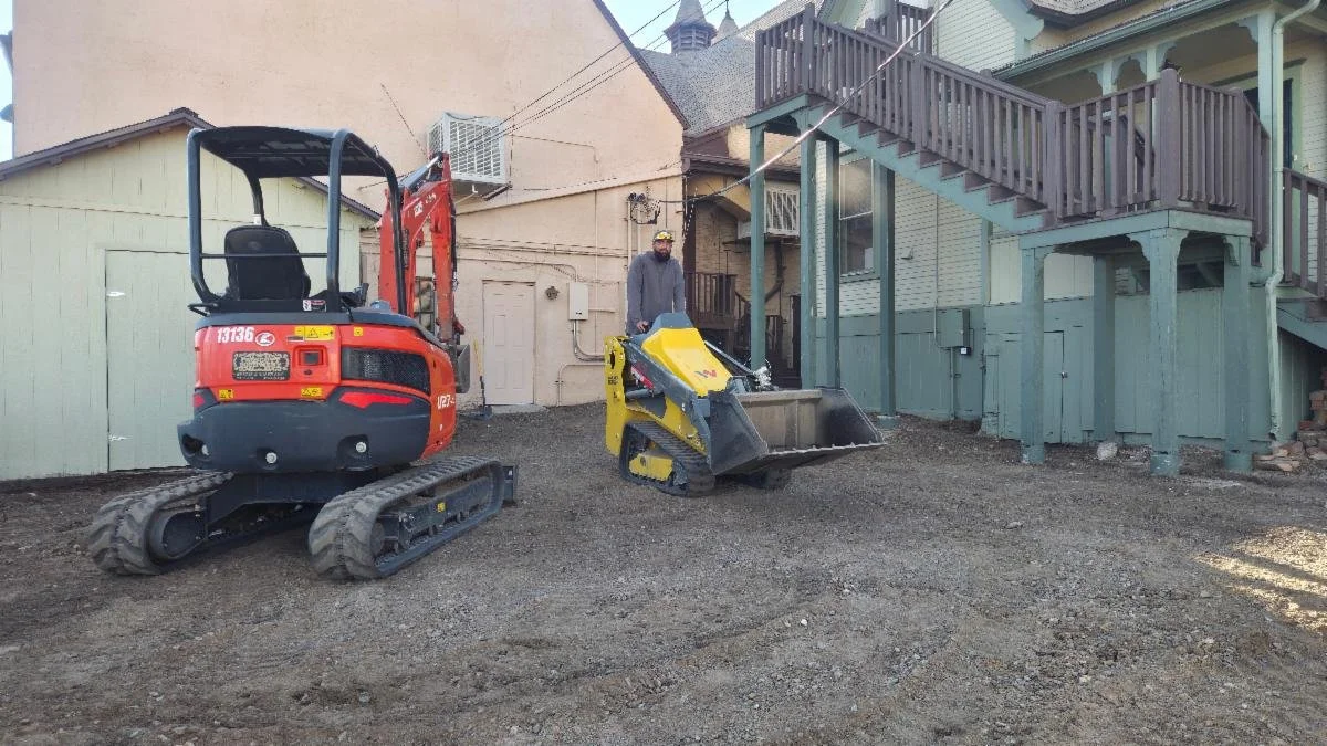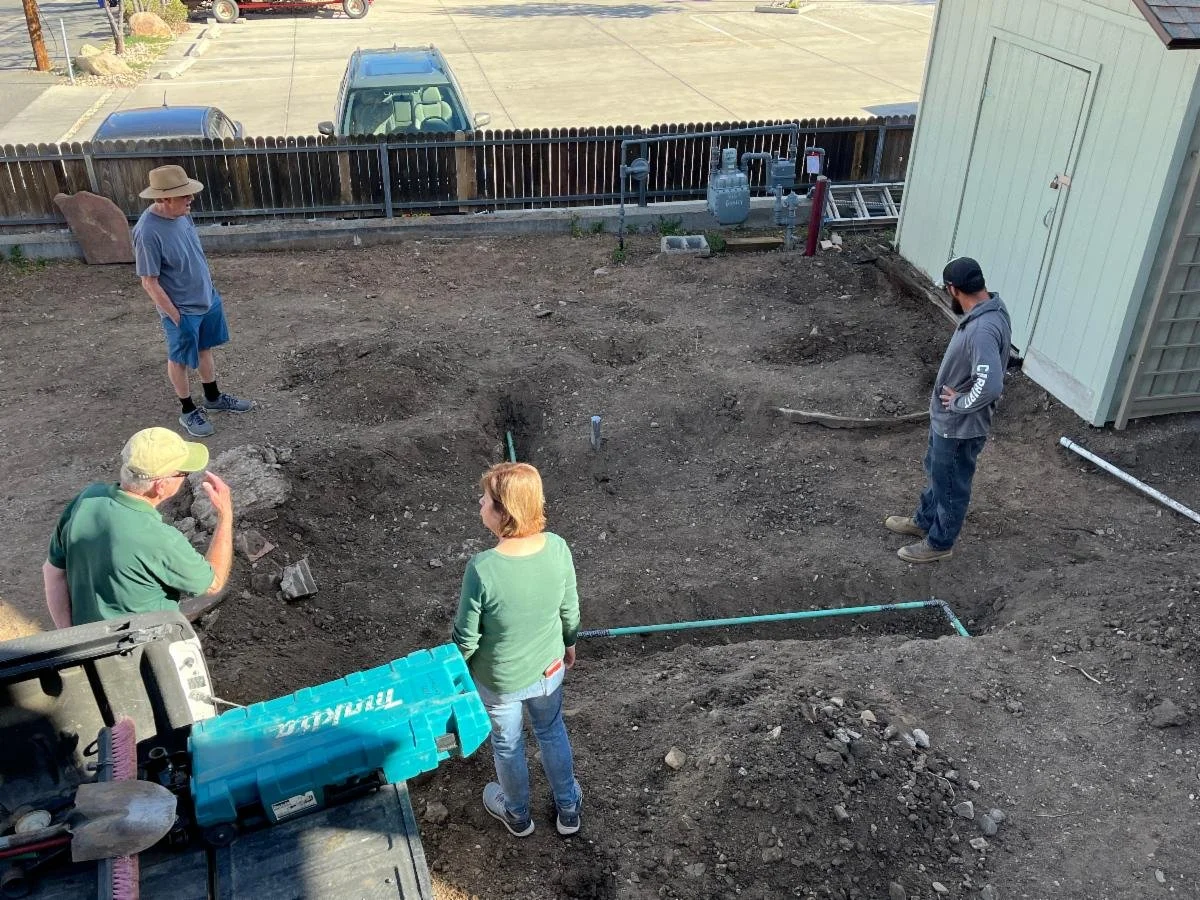 First Congregational Prescott's memorial garden update: Grading of the area is nearly complete. Many underground pipes were discovered, and new pipes were added for drainage. An electric conduit was installed to run a fountain and irrigation lines will be dug and made ready for when plants are added in May/June.