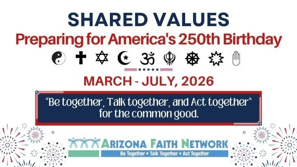 Join AFN for a series of four monthly online gatherings followed by an interfaith prayer vigil as we mark 250 years of the American experiment. Drawing on the faith250 framework, we will gather to reflect on texts that have shaped our history, from the call of the New Colossus, to the promise of the Declaration of Independence and more. We will hear from diverse guest speakers and together, we will seek divine guidance to move beyond polarization and toward a future where "liberty and justice for all" is a lived reality for every neighbor.