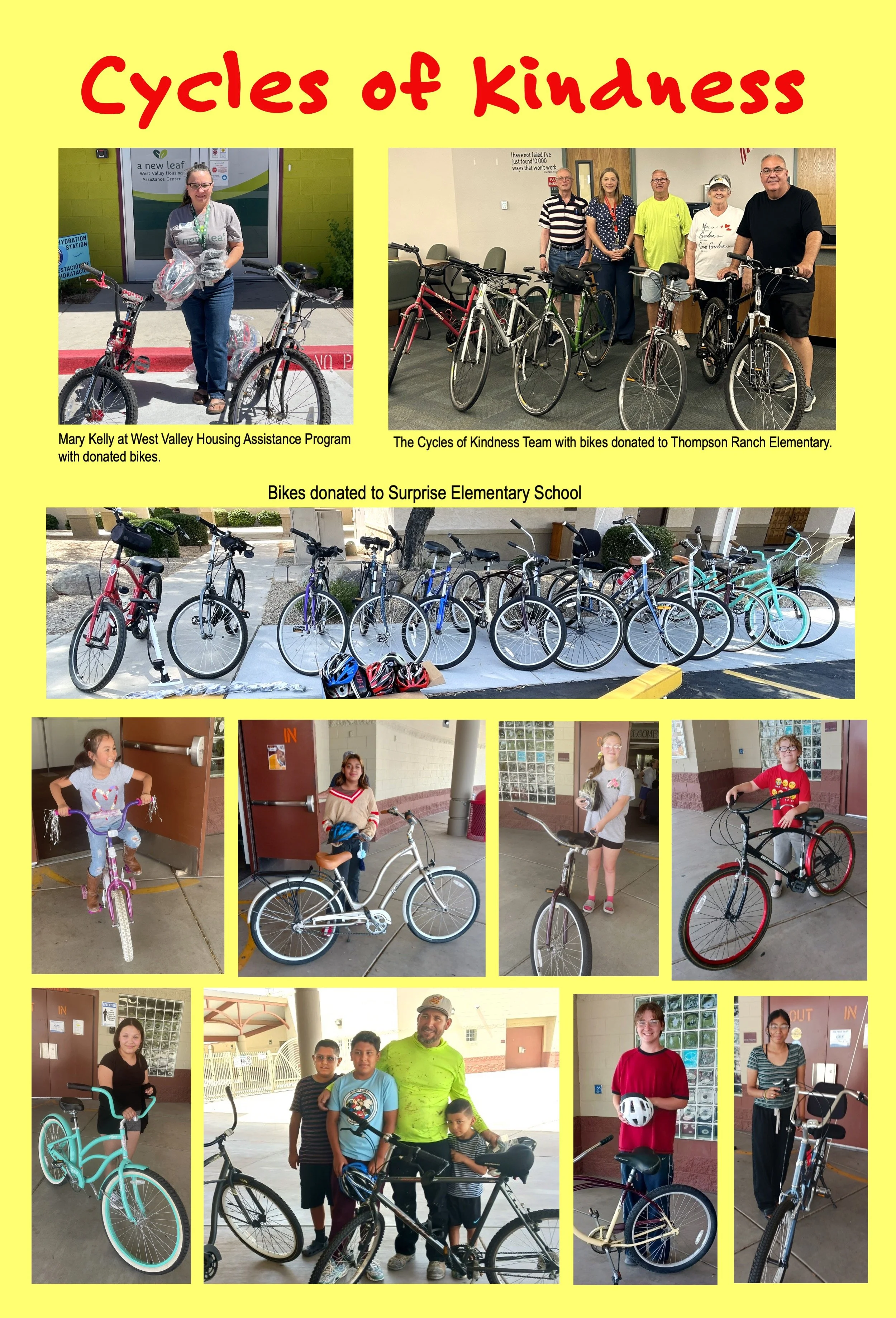 Sixteen months in, Desert Garden UCC’s Cycles of Kindness bike donation program is thriving. To date, nearly 270 bicycles have been received, each carefully inspected and given basic repairs by a member of the Sun City West Bicycle Club. Once ready, the bikes are donated to individuals and families in need of affordable transportation.